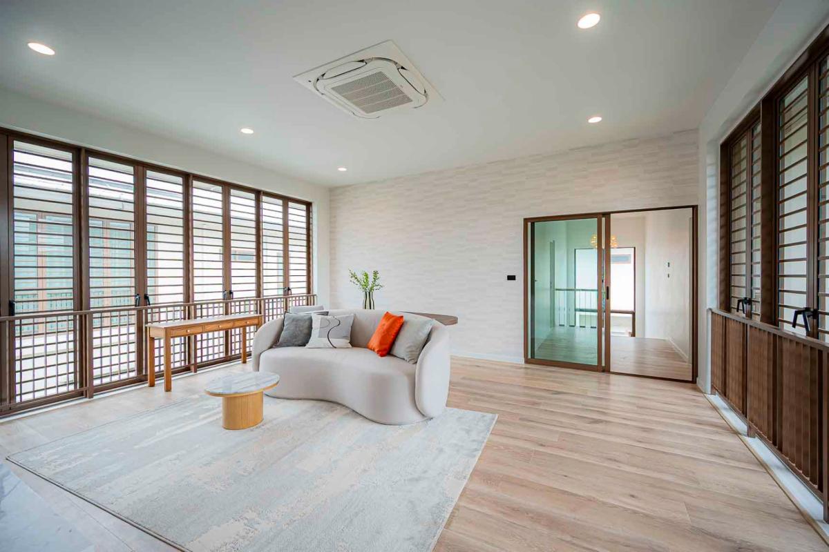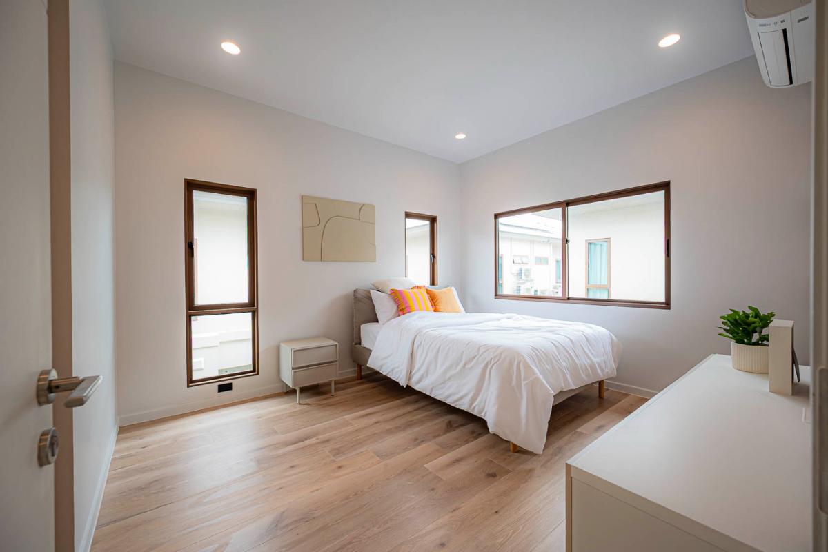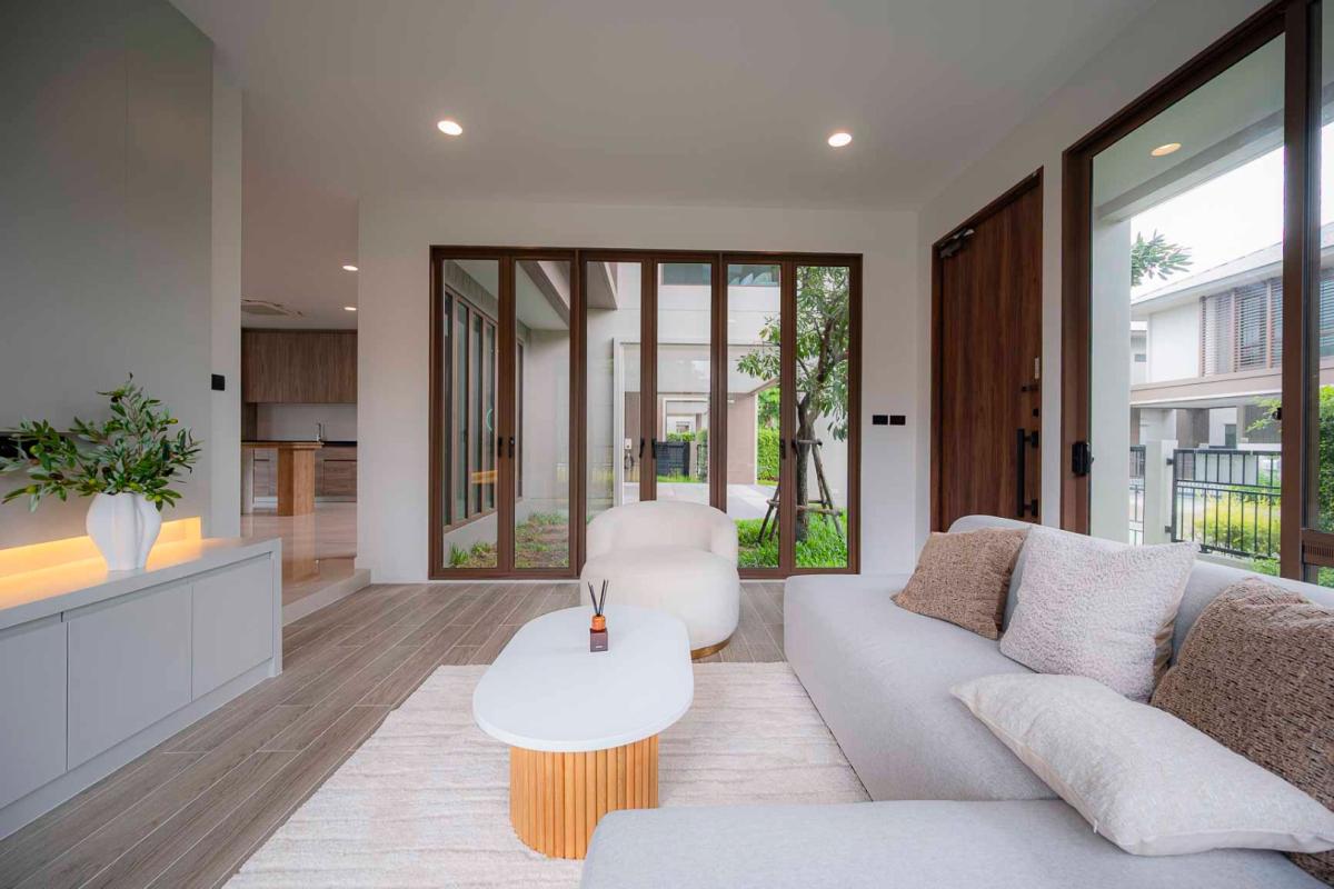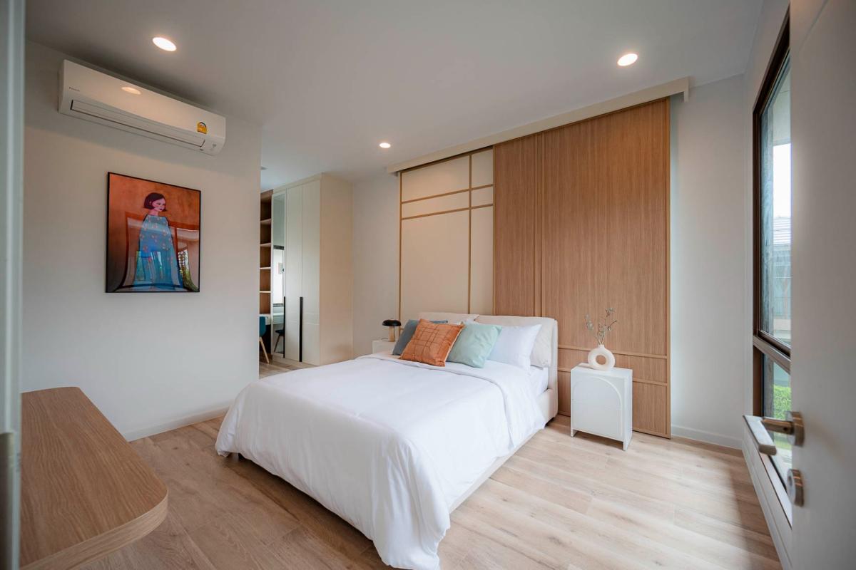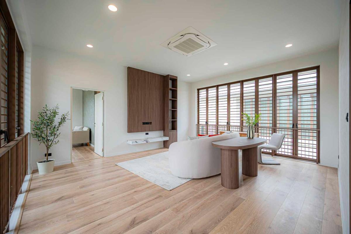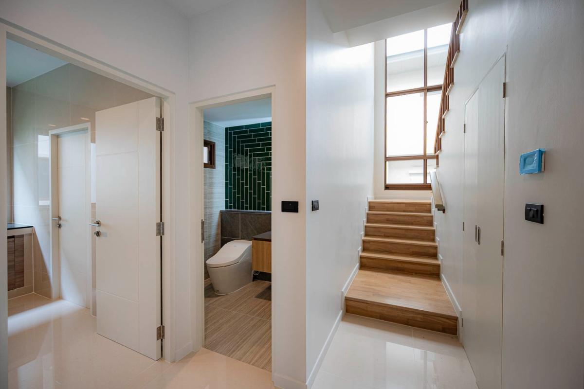Burasiri Bangkok Kreetha is a resort-style single-family home development featuring technology and modern living functions. Located in Bangkok Kreetha, near Rama 9, it's just minutes from the expressway and Suvarnabhumi Airport. This 2-story single-family home boasts 4 bedrooms and 5 bathrooms, with a spacious 300 sq m living area. It's surrounded by leading educational institutions, hospitals, golf courses, and shopping malls such as Brighton College International School, Samitivej Srinakarin Hospital, Market Place Bangkok Kreetha, The Nine Rama 9, Mandarin International School, and Bodindecha School. (Near Singhaseni Hospital), Vejthani Hospital, etc., along with project amenities such as a saltwater swimming pool, central garden, and 24-hour security system.