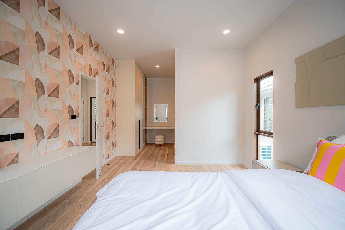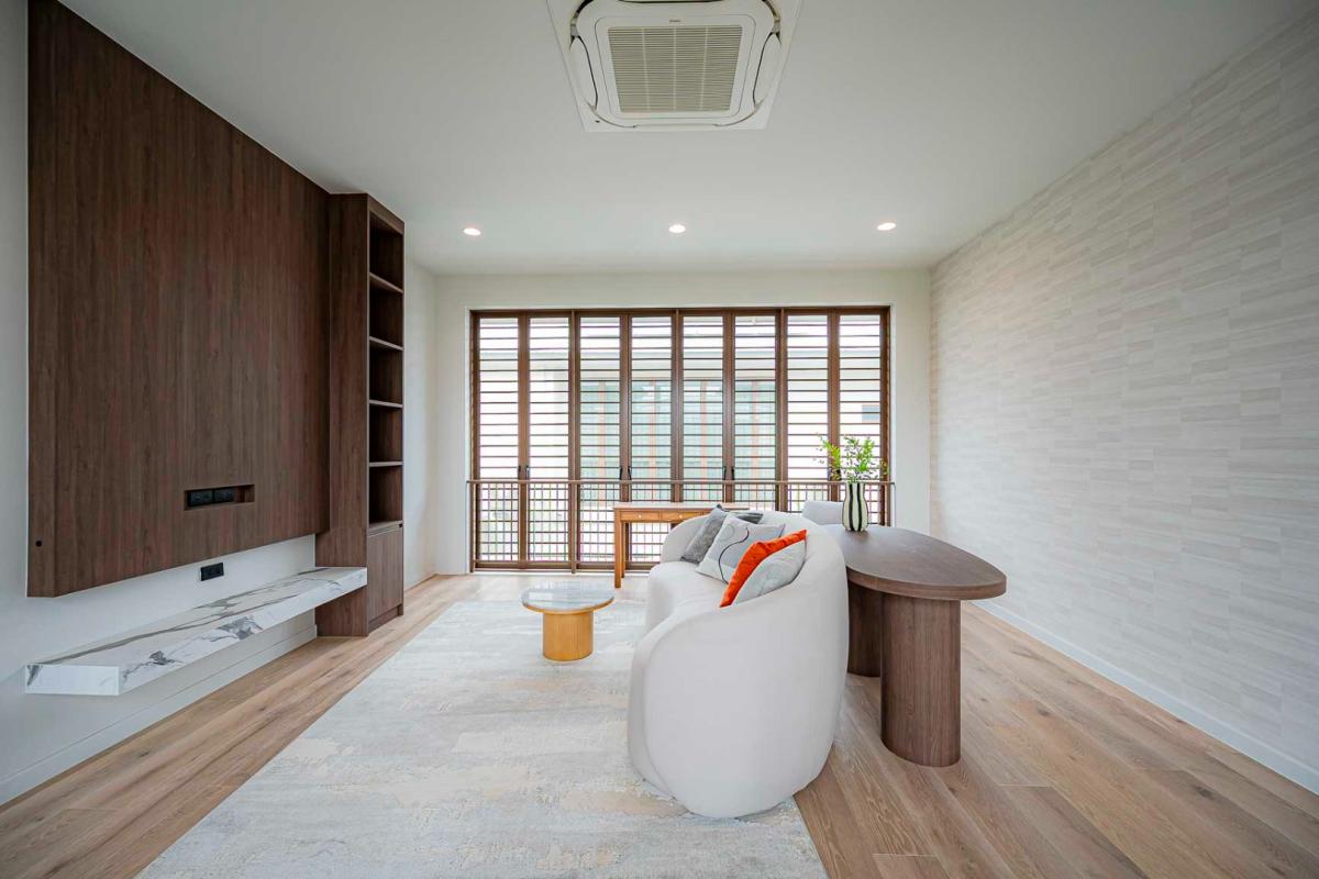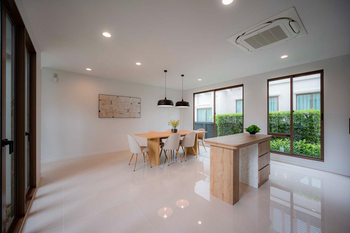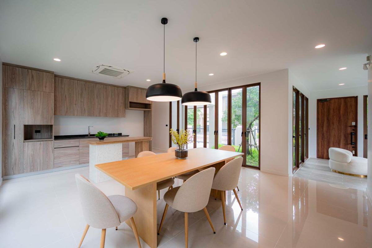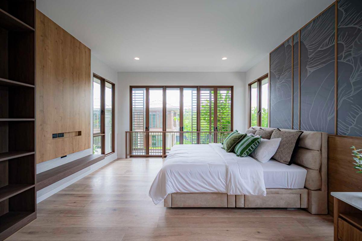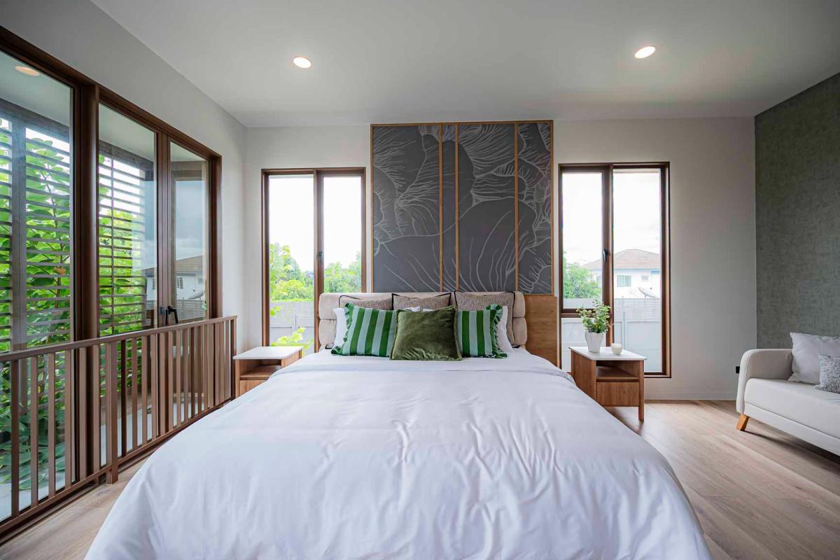 Burasiri Bangkok Kreetha is a resort-style single-family home development featuring technology and modern living functions. Located in Bangkok Kreetha, near Rama 9, it's just minutes from the expressway and Suvarnabhumi Airport. This 2-story single-family home boasts 4 bedrooms and 5 bathrooms, with a spacious 300 sq m living area. It's surrounded by leading educational institutions, hospitals, golf courses, and shopping malls such as Brighton College International School, Samitivej Srinakarin Hospital, Market Place Bangkok Kreetha, The Nine Rama 9, Mandarin International School, and Bodindecha School. (Near Singhaseni Hospital), Vejthani Hospital, etc., along with project amenities such as a saltwater swimming pool, central garden, and 24-hour security system.