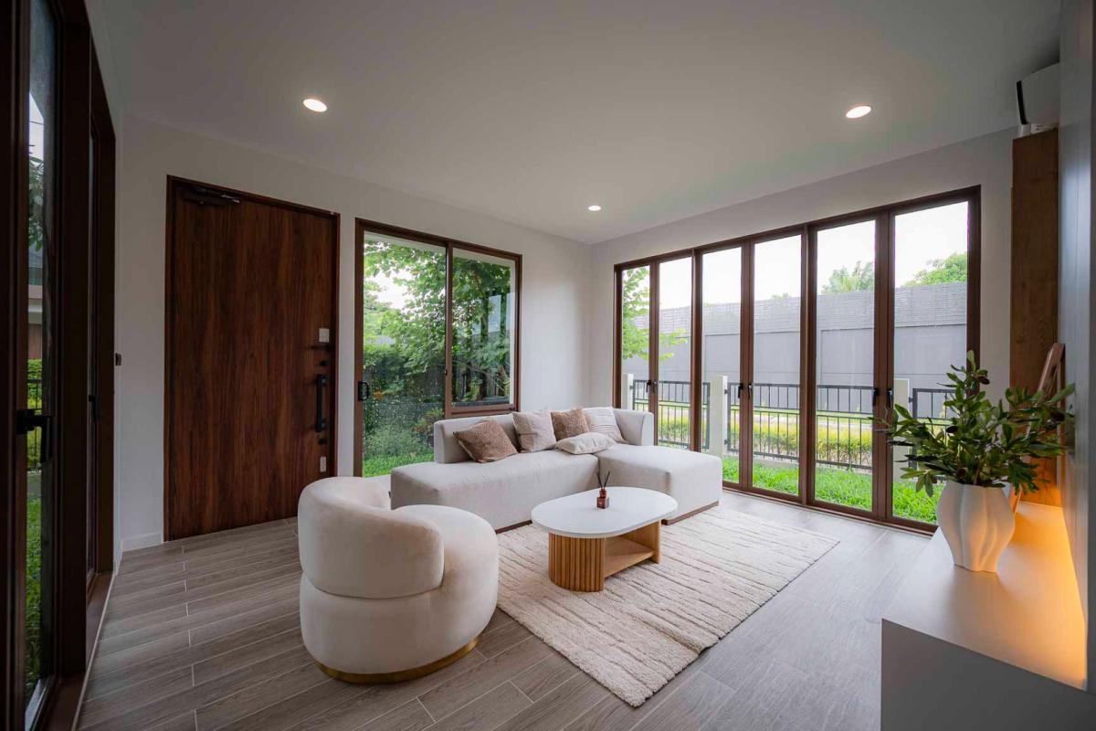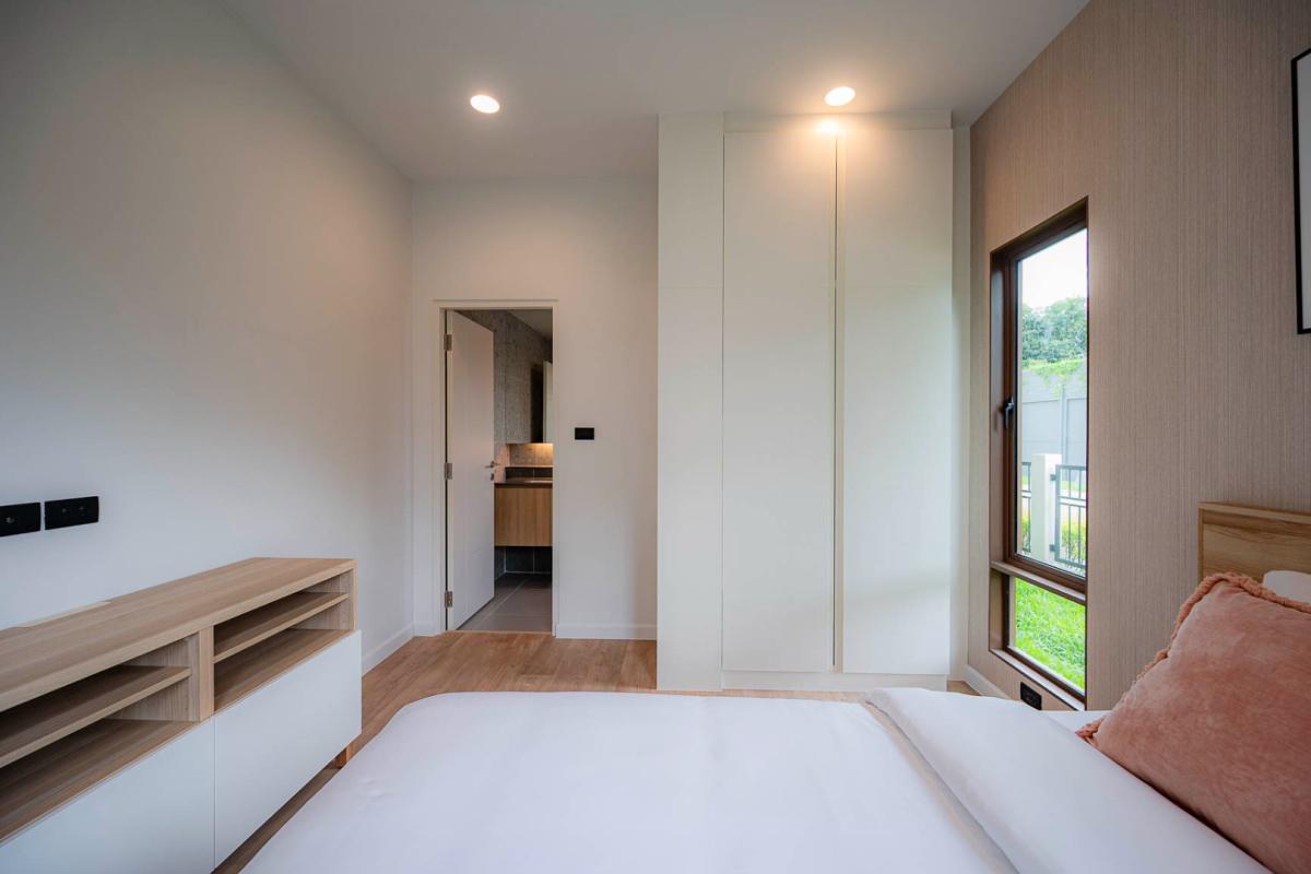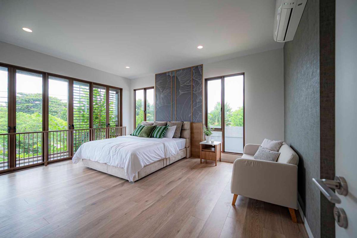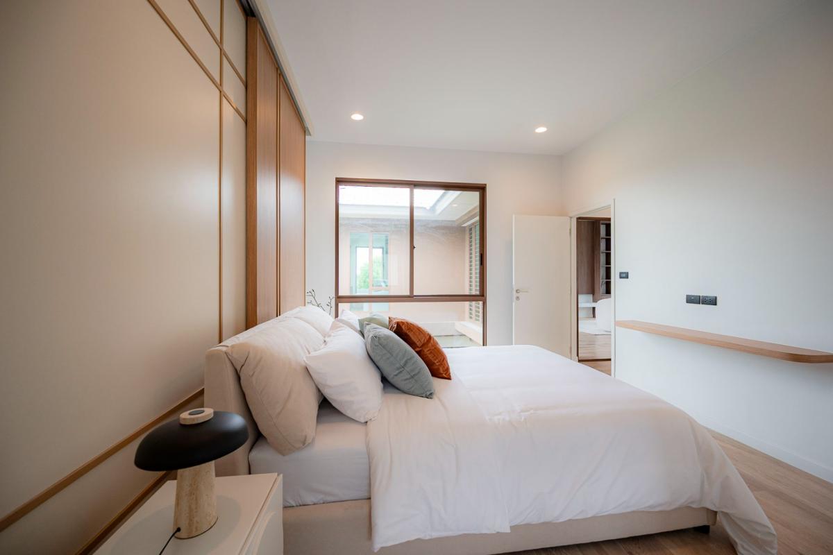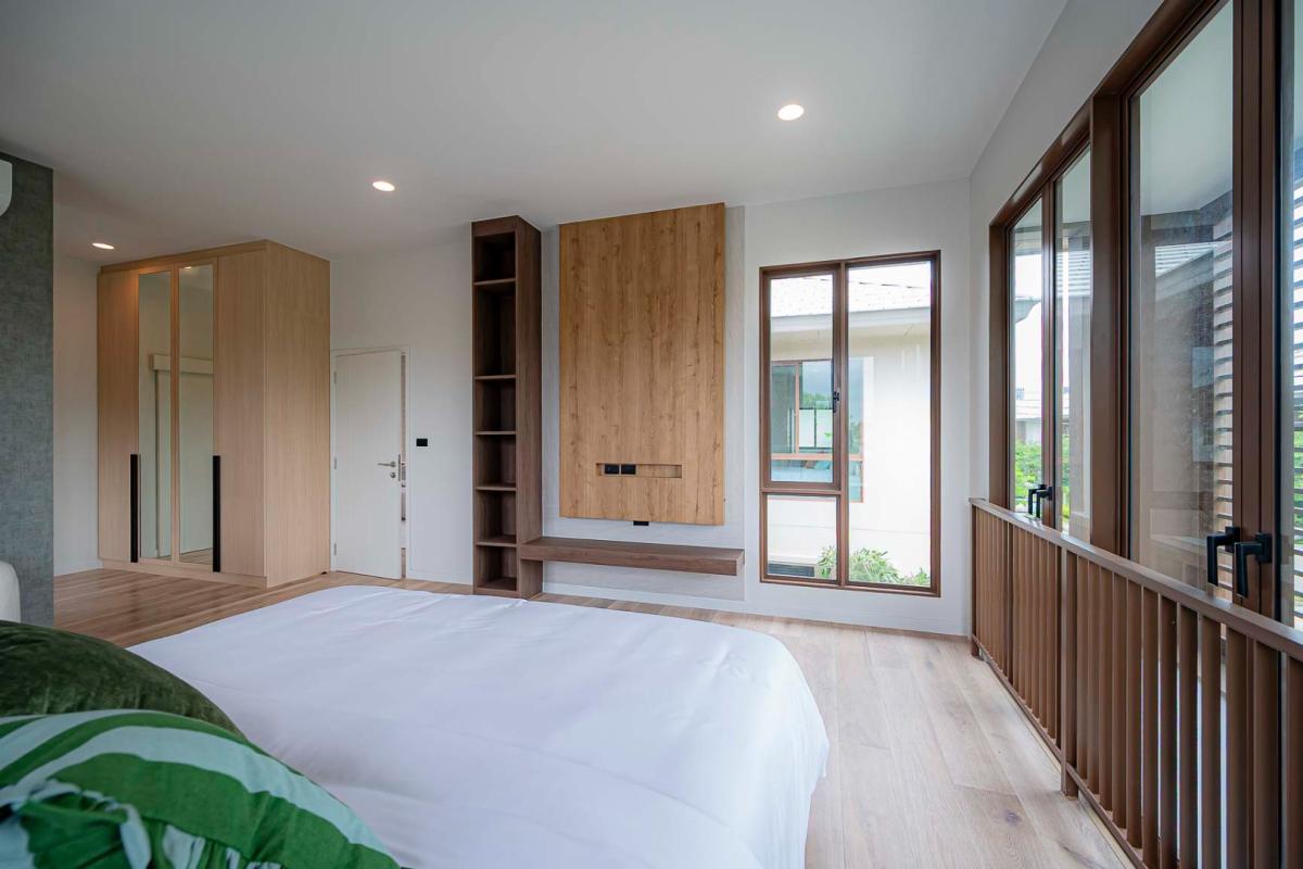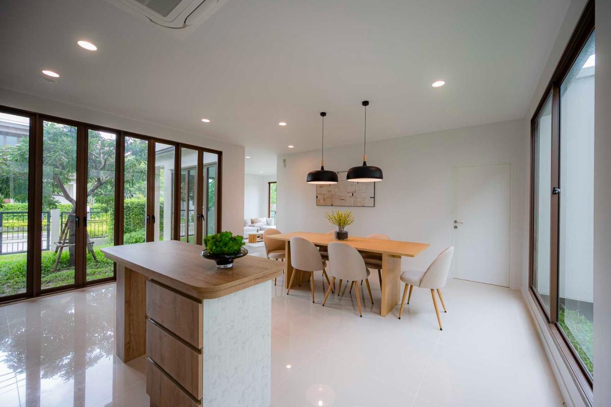 Burasiri Bangkok Kreetha is a resort-style single-family home development featuring technology and modern living functions. Located in Bangkok Kreetha, near Rama 9, it's just minutes from the expressway and Suvarnabhumi Airport. This 2-story single-family home boasts 4 bedrooms and 5 bathrooms, with a spacious 300 sq m living area. It's surrounded by leading educational institutions, hospitals, golf courses, and shopping malls such as Brighton College International School, Samitivej Srinakarin Hospital, Market Place Bangkok Kreetha, The Nine Rama 9, Mandarin International School, and Bodindecha School. (Near Singhaseni Hospital), Vejthani Hospital, etc., along with project amenities such as a saltwater swimming pool, central garden, and 24-hour security system.