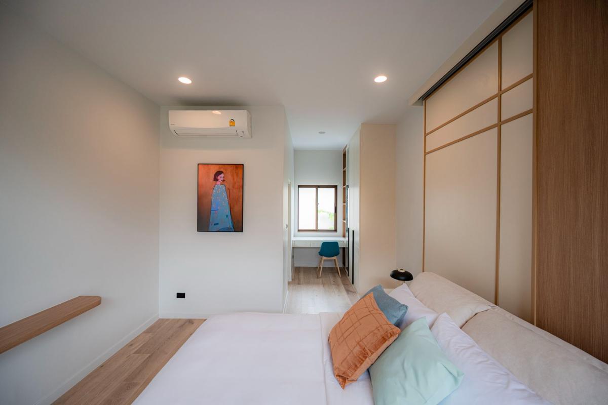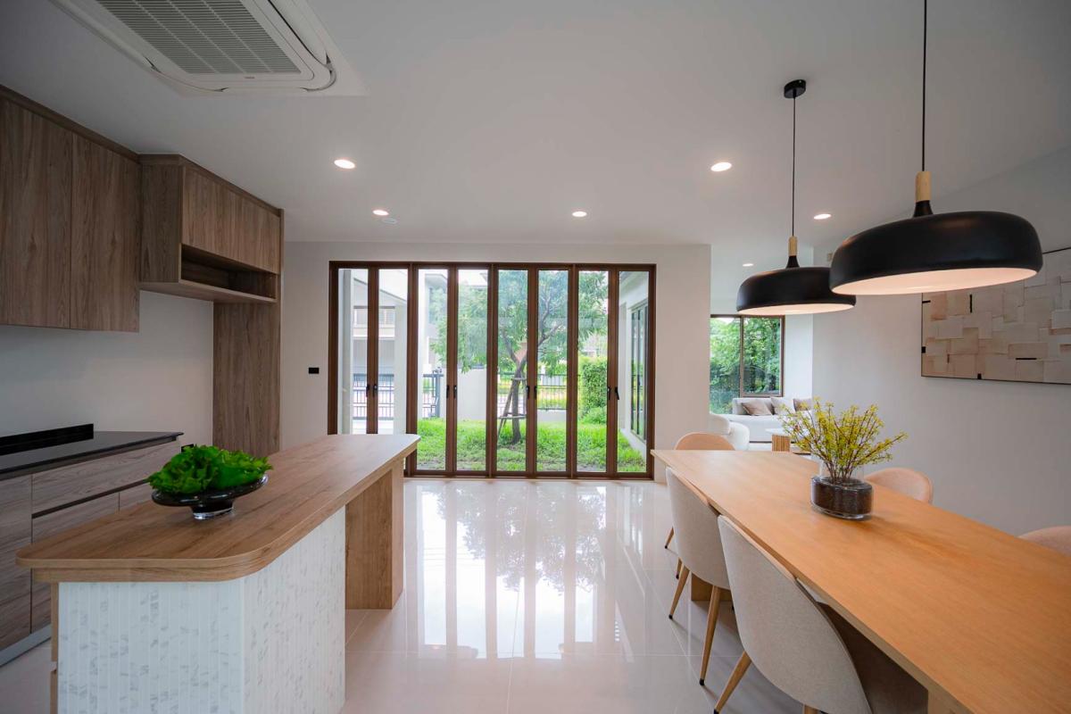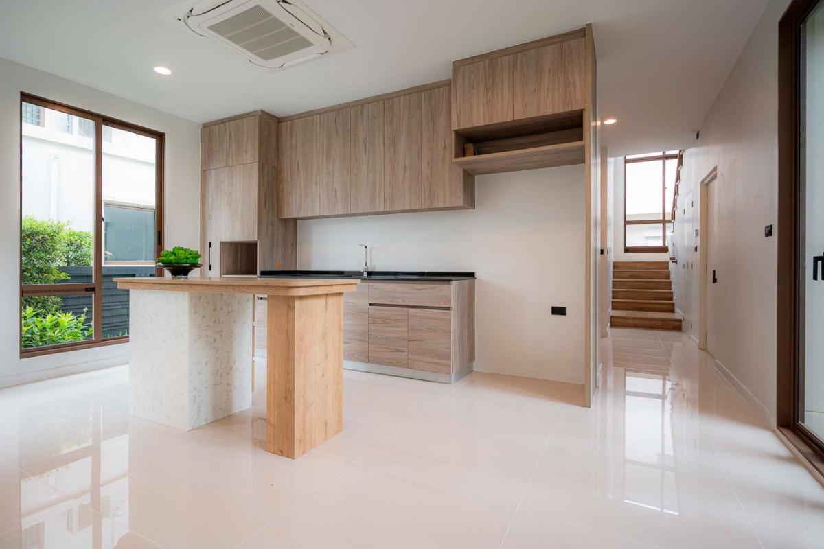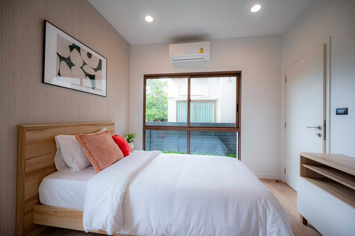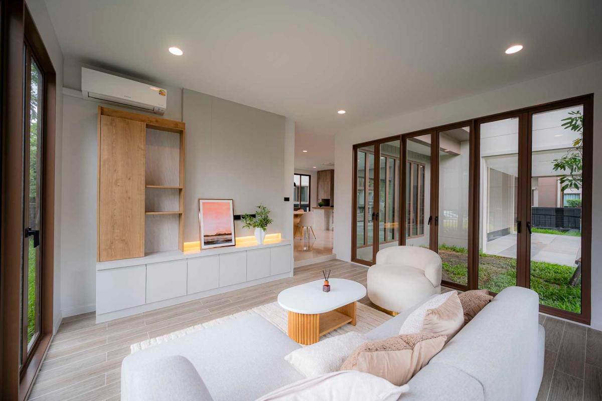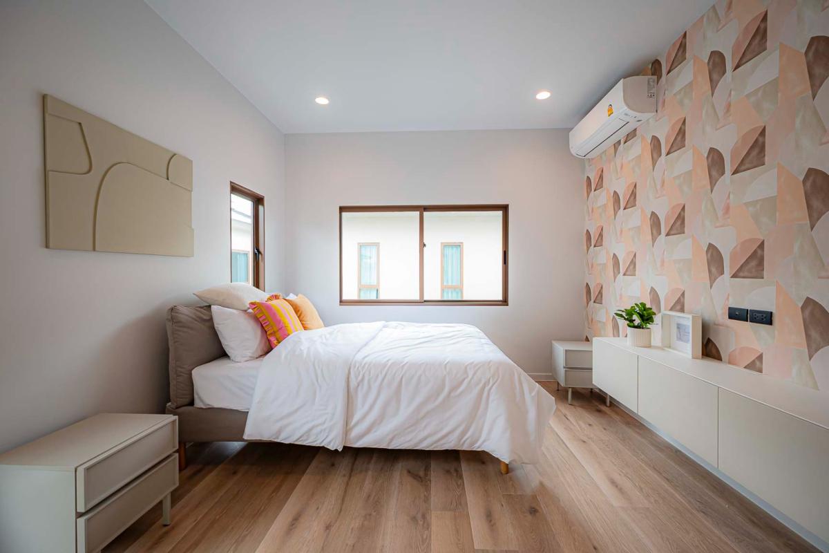 Burasiri Bangkok Kreetha is a resort-style single-family home development featuring technology and modern living functions. Located in Bangkok Kreetha, near Rama 9, it's just minutes from the expressway and Suvarnabhumi Airport. This 2-story single-family home boasts 4 bedrooms and 5 bathrooms, with a spacious 300 sq m living area. It's surrounded by leading educational institutions, hospitals, golf courses, and shopping malls such as Brighton College International School, Samitivej Srinakarin Hospital, Market Place Bangkok Kreetha, The Nine Rama 9, Mandarin International School, and Bodindecha School. (Near Singhaseni Hospital), Vejthani Hospital, etc., along with project amenities such as a saltwater swimming pool, central garden, and 24-hour security system.